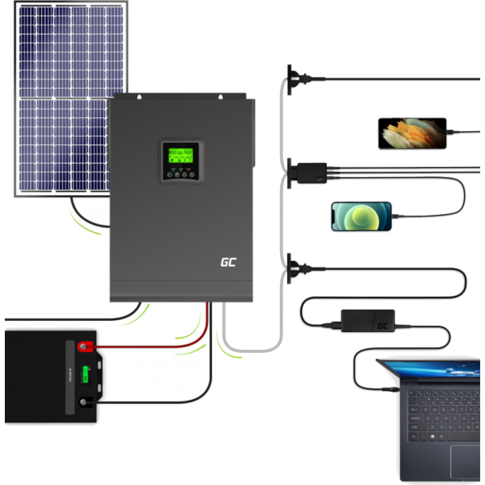 Гібридний сонячний інвертор Green Cell INVSOL04 Off Grid з MPPT 145А 48VDC 230VAC 3kW Чиста синусоїда